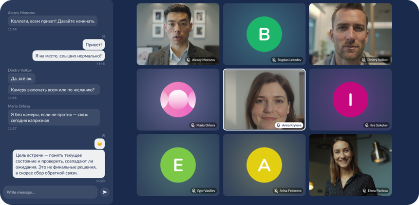 В будущем в видеозвонках мессенджера Time появятся новые возможности: размытие фона, режим «картинка в картинке», адаптивная сетка, планирование и запись встреч и хранилище артефактов — записи, чаты и транскрибации, собранные в одном месте.
