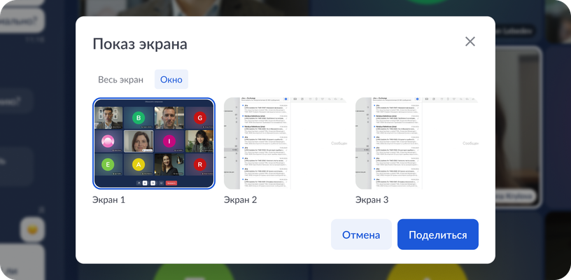 При показе экрана вы выбираете, чем делиться: всем экраном или только одним окном